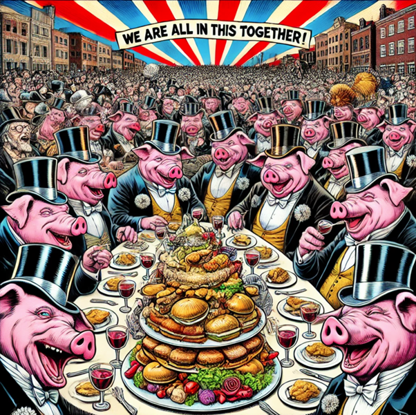 But the real beneficiaries are the ruling class of monied interests in the City of London. These people stand to make unimaginable sums from processing the flows of green money stolen from us and laundered through opaque carbon trading schemes. As said, these people are mostly invisible, but you do see them shuffling about in the background at meetings of things like the World Economic Forum, where decreasingly sotto voce lectures are put on about reducing the population and enslaving the survivors.